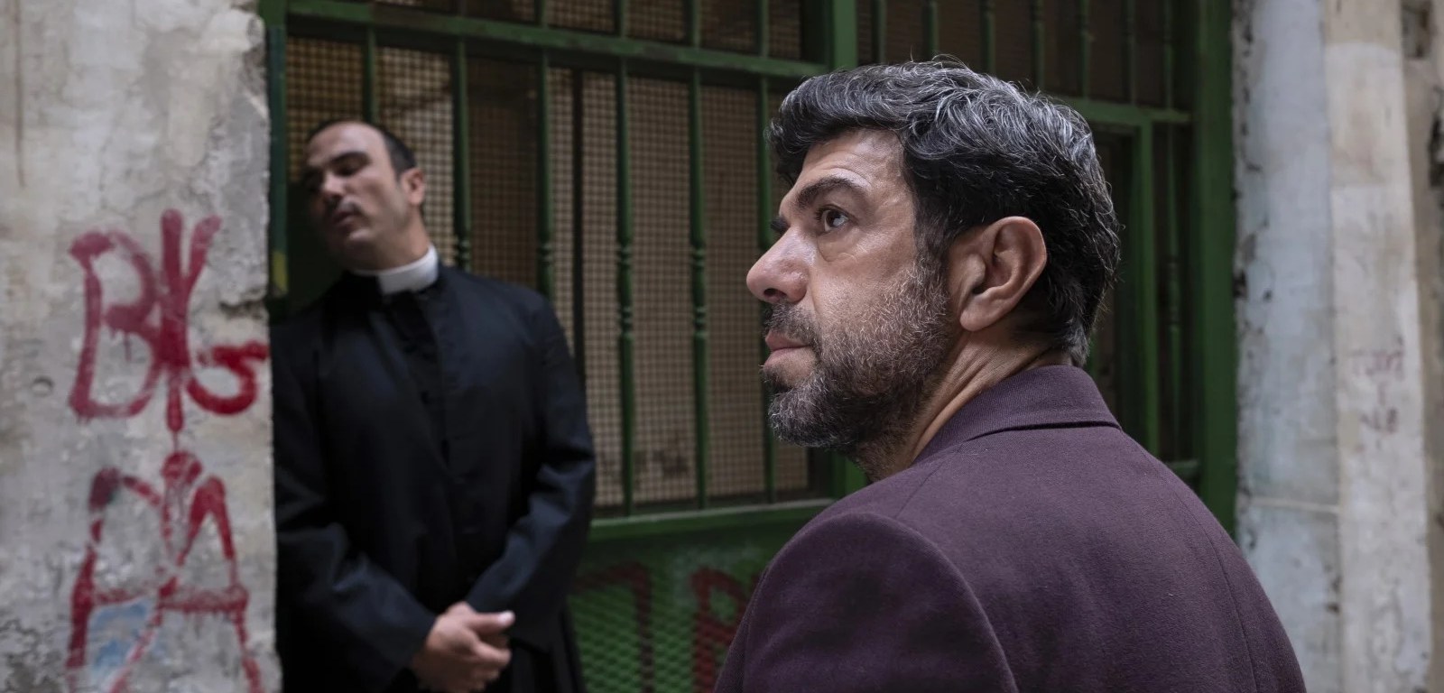 TIEFE WUNDEN Doch hinter all dem verbirgt sich eine Wunde. Felices Jugendfreund Oreste (Tommaso Ragno), mit dem er früher in Kleinkriminalität verwickelt war, ist heute ein gefürchteter Gangster und hat eindeutig etwas damit zu tun, dass Felice sein geliebtes Neapel überhaupt verlassen hat. Don Luigi, der örtliche Priester, gespielt von Francesco Di Leva, ist ein leidenschaftlicher Kämpfer gegen Orestes mörderisches Gangstertum. Nachdem er verärgert auf Felices weltliches „Geständnis“ reagiert hat, dass er der beste Freund dieser berüchtigten Figur sei, beginnt er einen subtilen Plan, um Oreste aus dem Weg zu räumen. Dazu gehört, dass er Felice all seinen Gemeindemitgliedern vorstellt – und so den Klatsch und Tratsch anregt, der auf Oreste zurückfallen wird. Er ermutigt sogar den nicht trinkenden Felice dazu, ein wenig Wein zu trinken.